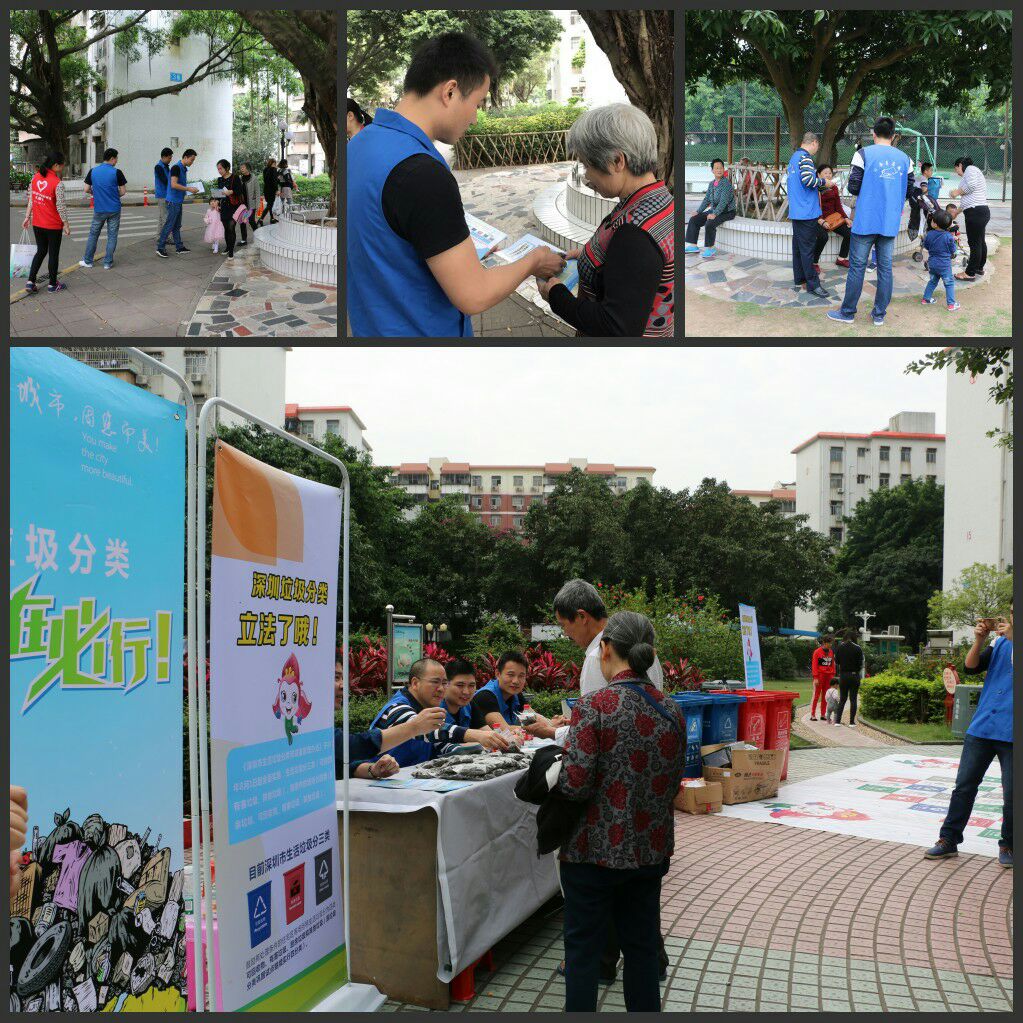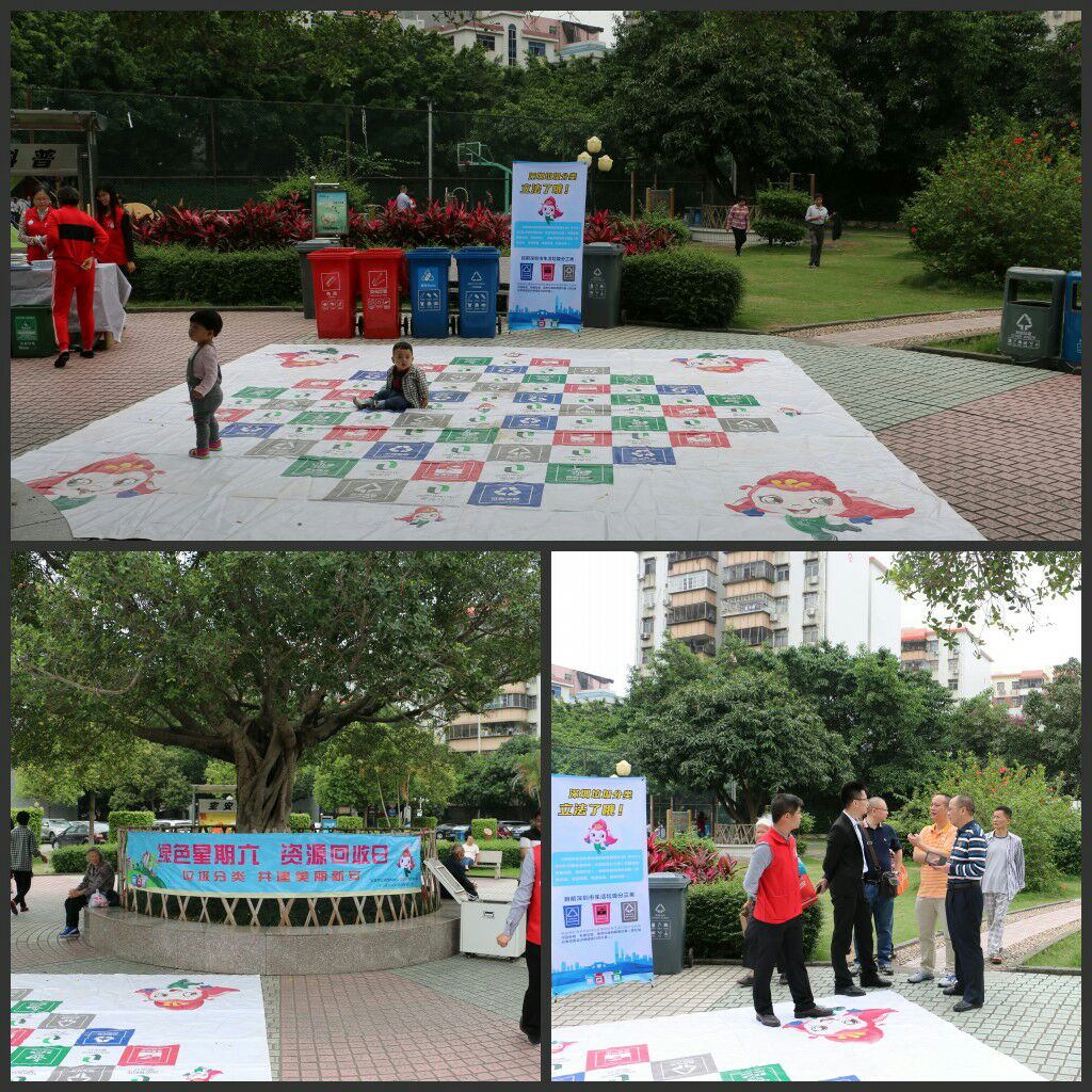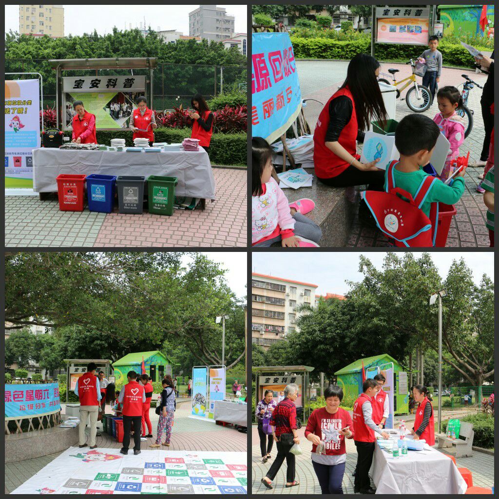 2017年4月15日上午9時,“藍馬甲”市公務員志愿者、新安城管科、義工聯志愿者、源創環保科技有限公司及三盛環保公司聯合在寶安新村開展“綠色星期六,資源回收日”活動。現場參加活動居民人數大約300人。向居民宣傳垃圾減量分類的意義,引導居民學會物盡其用、垃圾分類投放,并且在現場派發300多份宣傳指導手冊及200多份禮品,組織開展親子活動進行垃圾分類小游戲。此次活動回收了廢紙皮50約多斤、廢塑料約20多斤、廢金屬約2斤、廢光管20條、廢電池約0.5公斤。垃圾分類,共建美麗新安。