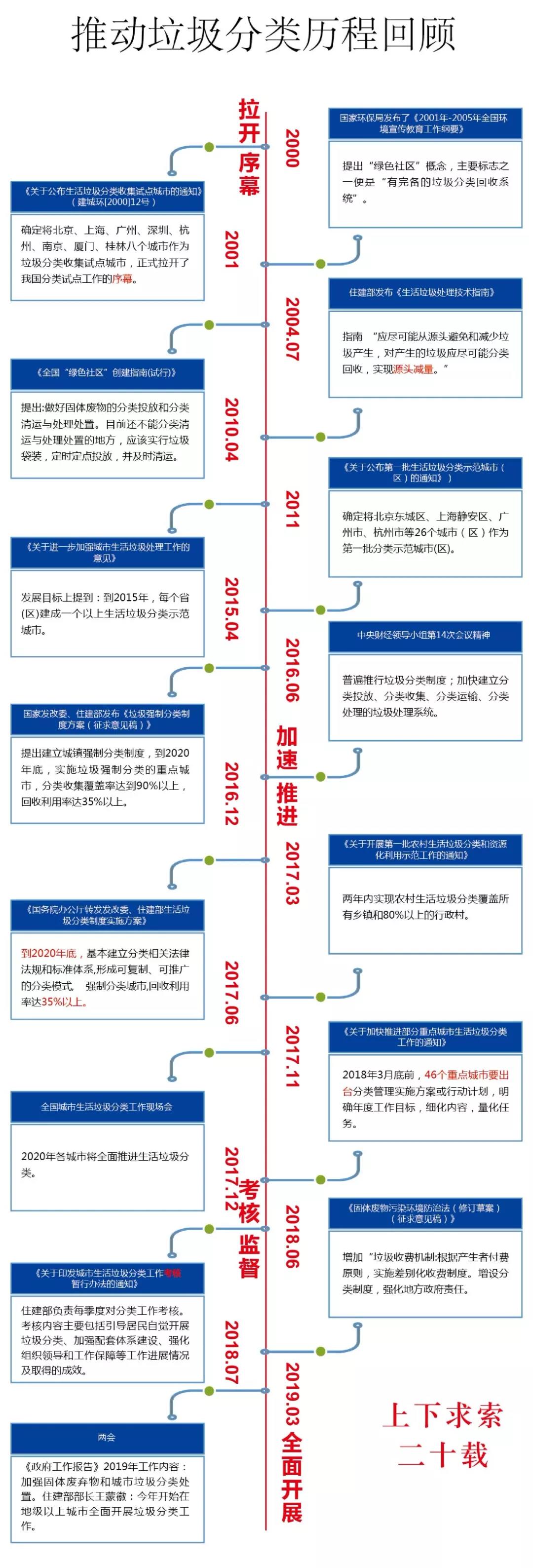 2017年,國家發(fā)改委、住建部發(fā)布《生活垃圾分類制度實施方案》,要求在全國46個城市先行實施生活垃圾強(qiáng)制分類,到2020年底,生活垃圾回收利用率達(dá)到35%以上。